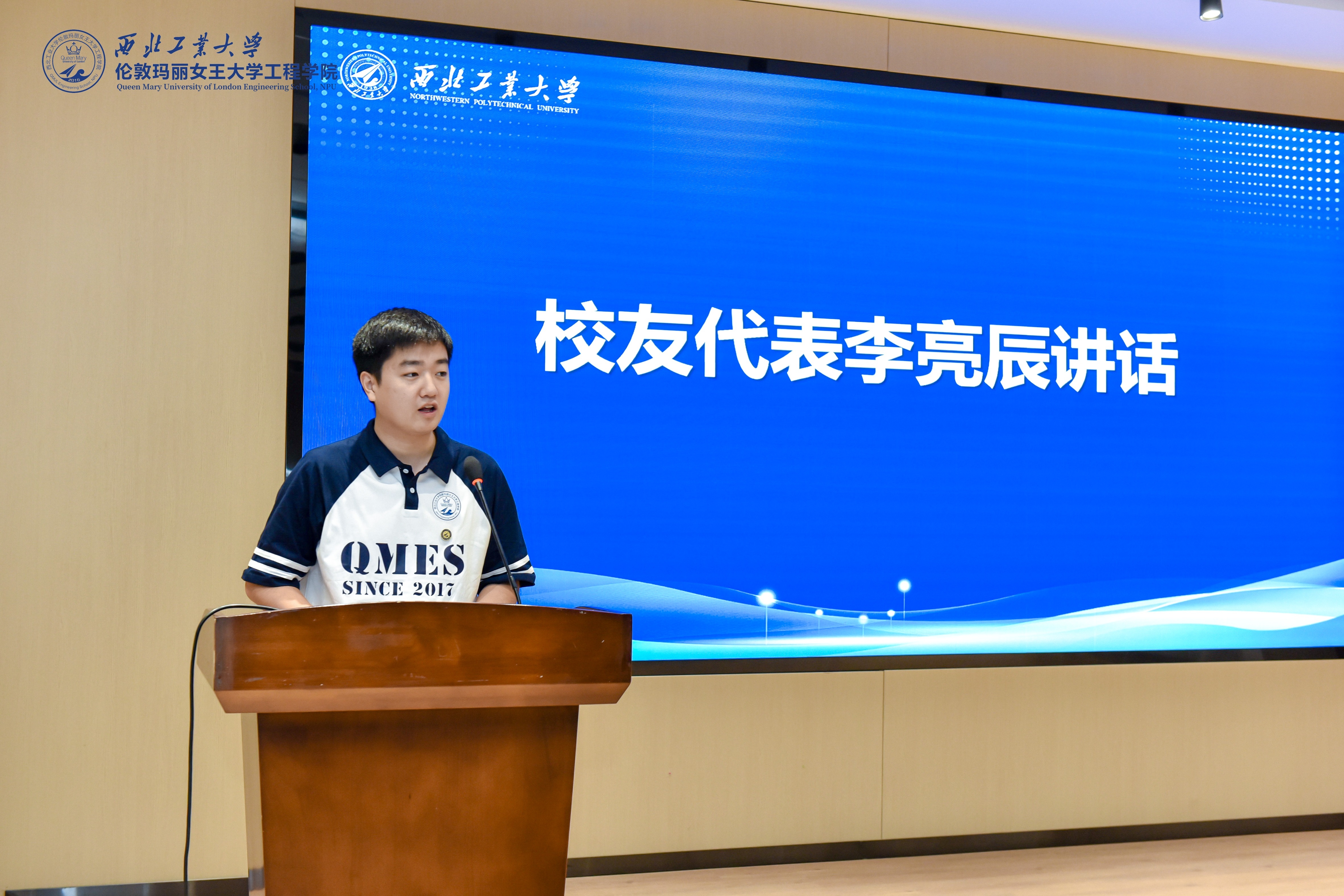 学院2017级首届毕业生、剑桥大学卡文迪许实验室博士范峻丞代表海外校友讲话。他表示,在英国留学期间深刻感受到了学院赋予的支持与帮助,校友会不仅是校友们分享经验、共享资源的平台,也是在异国他乡中找到归属感的重要纽带。