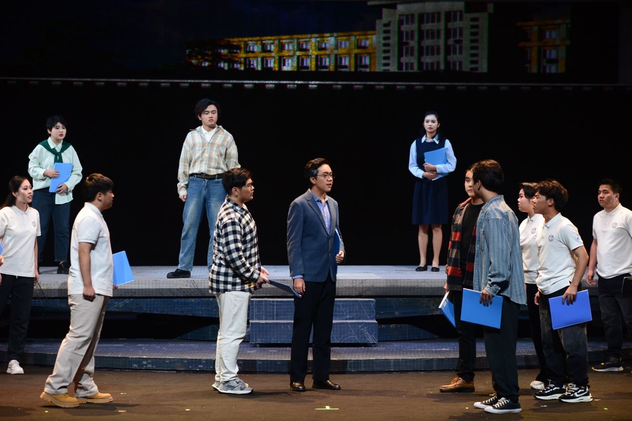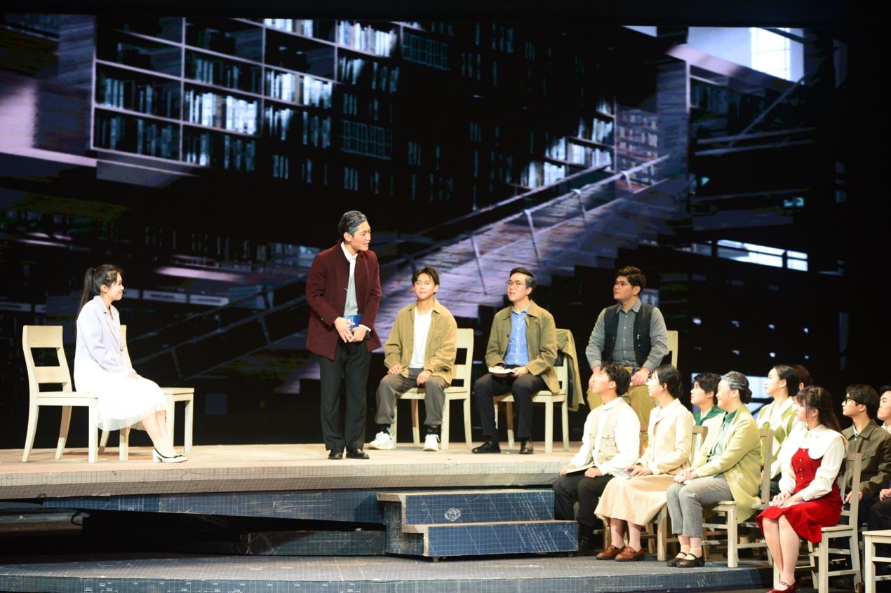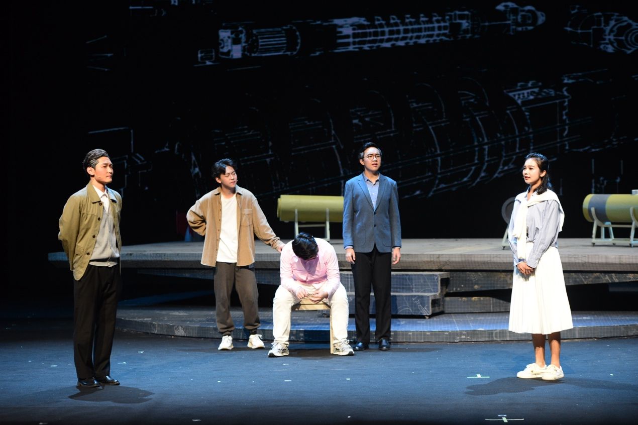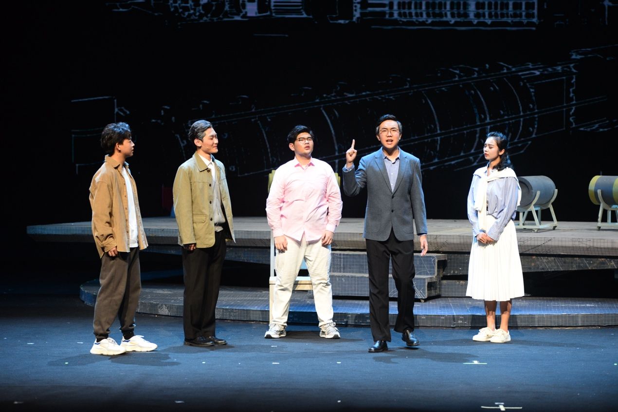 启动仪式后,首场演出剧目《大国之蓝》精彩上演。该剧以“全国高校黄大年式教师团队”“万象城娱乐awc线路自主水下航行器团队”事迹为素材,以科技工作者群像为主体,讲述科研育人、矢志报国的故事,展现科技工作者们爱国、创新、求实、奉献、协同、育人的精神风貌。话剧选择了“为周文渊院士写传记”的叙事线索,以年轻女记者安妮采访周文渊院士作为主线,讲述了水下航行器科研攻关的故事,每一阶段难关的跨越都使安妮更深切地理解这一群心怀“国之大者”的科技工作者,用他们的故事,激励青年学子自信自强、守正创新、踔厉奋发、勇毅前行。