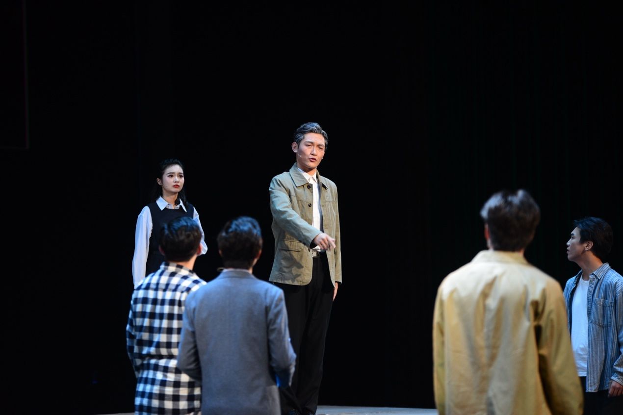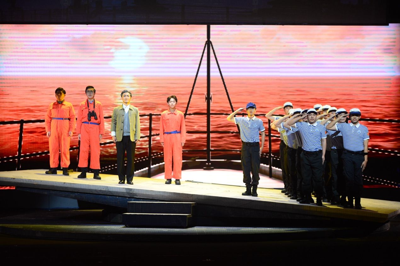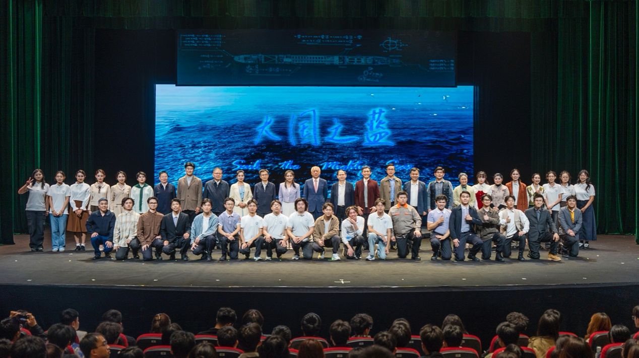 话剧《大国之蓝》自2021年开始筹备,2023年4月首演,历经两轮、五场,“校友演校友、学弟演学长”,剧中40名演职人员均由学校各学院的非艺术特长学生担任。学校艺术教育中心主任张清江,艺术教育中心教授、“科学+戏剧”通识性戏剧美育团队负责人孙瑜,艺术教育中心首席专家刘惠,航海学院党委书记刘朝亚,校图书馆党总支书记孙华强等一同现场观演。