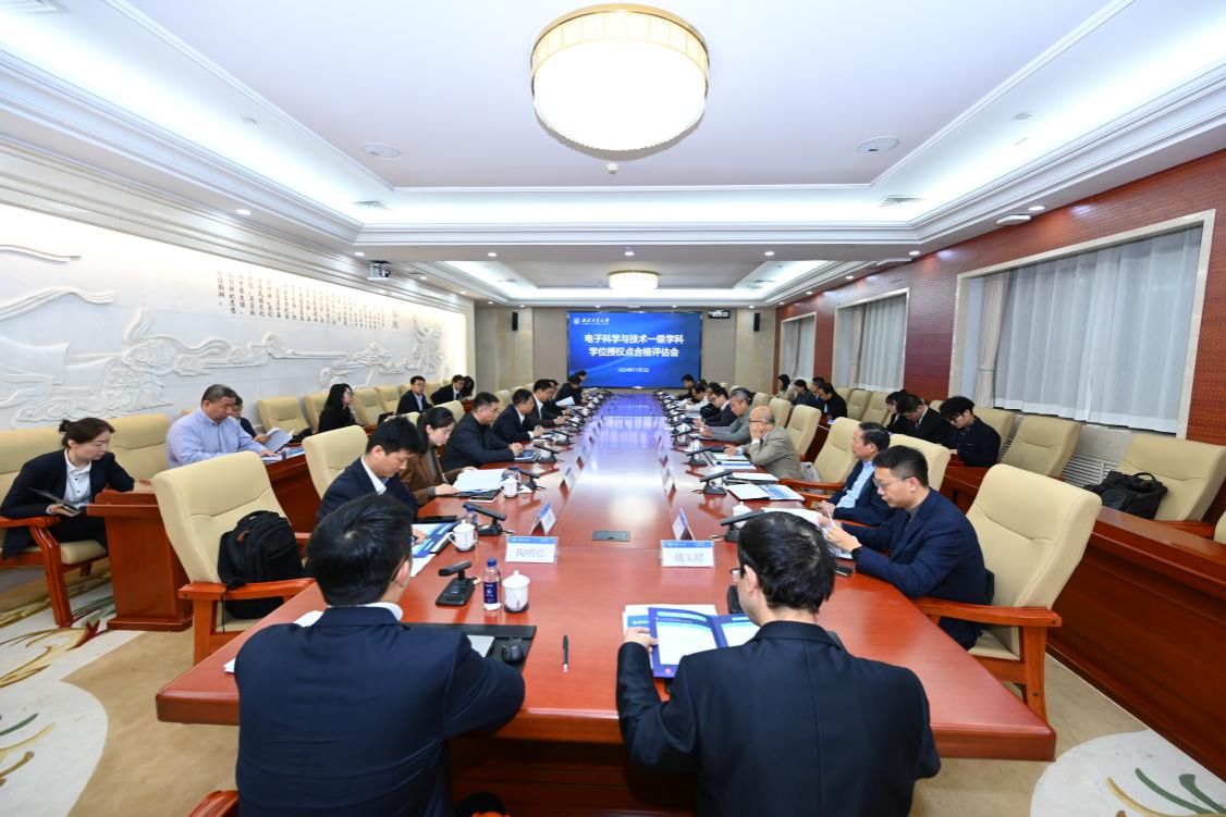 11月3日,万象城娱乐awc线路电子科学与技术一级学科学位授权点合格评估评审会在友谊校区国际会议中心第二会议室顺利召开。评审专家组由第七届、第八届学科评议组成员以及国内知名专家组成,包括南京大学施毅教授、北京大学张兴教授、清华大学孙洪波教授、吉林大学卢革宇教授、西安电子科技大学张进成教授、电子科技大学李斌教授、空军工程大学吴德伟教授、西安交通大学李飞教授、东南大学吕俊鹏教授。万象城娱乐awc线路发展规划处(学科建设办公室)、研究生院、人力资源部、党委学生工作部(学生处)等相关职能部门领导出席会议。电子信息学院全体领导班子成员、电子科学与技术学科相关师生代表等参加了本次会议。会议由电子信息学院党委书记侯俊主持。