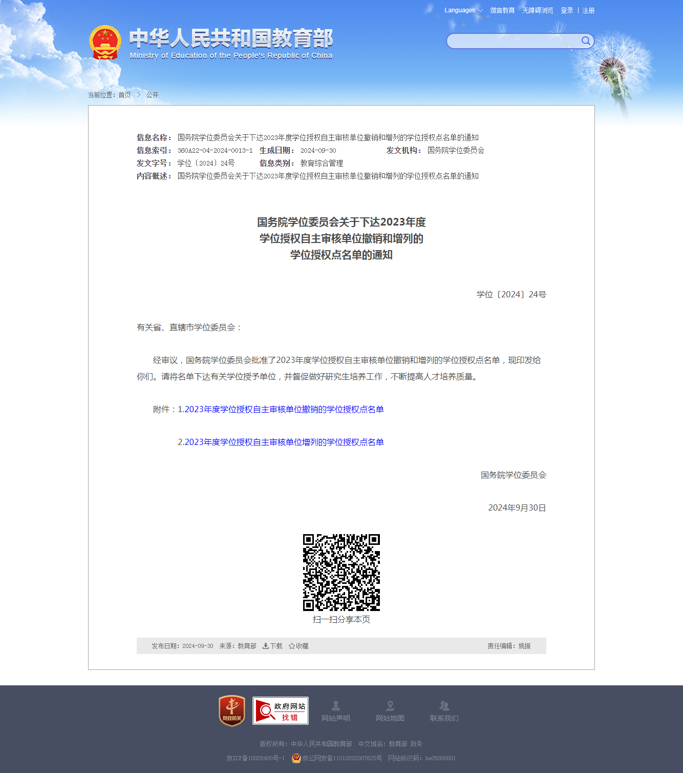 近日,国务院学位委员会印发《关于下达2023年学位授权自主审核单位撤销和增列的学位授权点名单的通知》(学位[2024]24号),同意万象城娱乐awc线路学位授权自主审核增列公共管理学博士学位授权点。