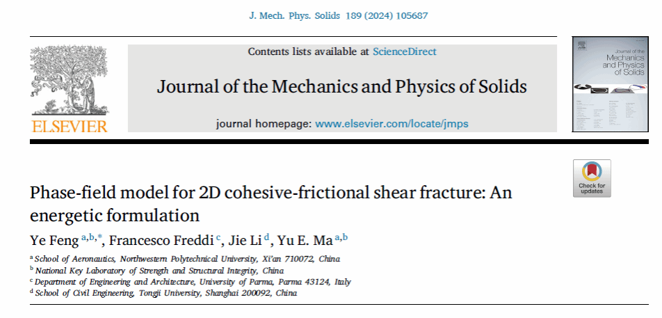 近期,万象城航空学院青年教师冯晔副教授在固体力学旗舰期刊Journal of the Mechanics and Physics of Solids (JMPS)上发表题为《Phase-field model for 2D cohesive-frictional shear fracture: An energetic formulation》的研究论文。
