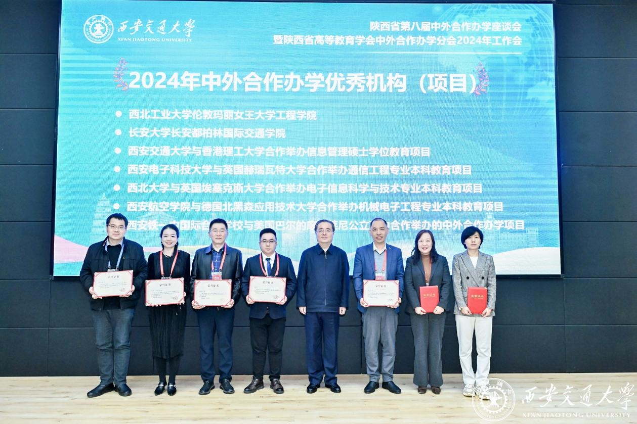 本次会议还对2024年度优秀机构(项目)、管理人员、专家和组织单位进行了表彰。玛丽女王工程学院荣获“2024年度陕西省中外合作办学优秀机构”奖项,这是继2020年、2021年、2023年连续三次获奖后,第四次荣膺该奖。学院教育教学中心主任杨雨霏、学生辅导员兼组织员黄拳章荣获“2024年度陕西省中外合作办学优秀管理人员”的荣誉称号。